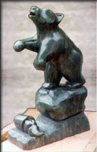 This bear cub with a skunk was carved in 1976