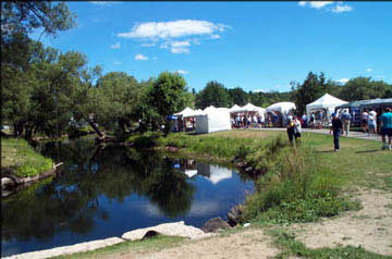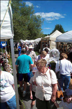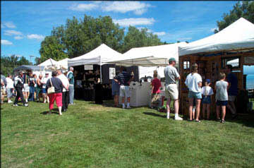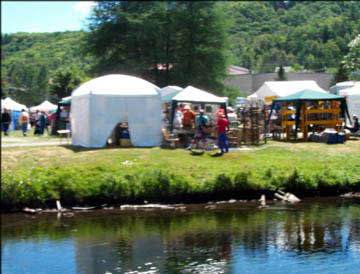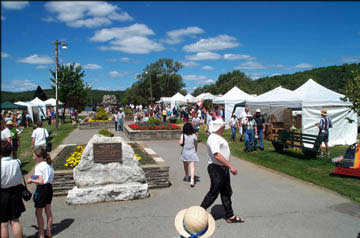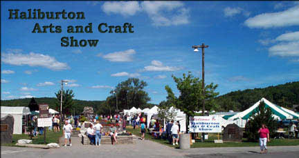 Haliburton stands perched on the shores of Head Lake. The beautifully laid out village with its interconnected series of parks does justice to the waterfront's potential, providing many inviting, green public spaces, with flower boxes, walking paths, a playground and public beach. In this setting, the Haliburton Highlands Guild of Crafts hold their annual Art and Craft Festival. |