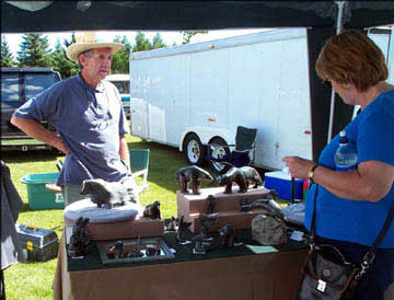 | Max started carving soapstone with me about 12 years ago. Over the years, he has developed his own personal style of sculpture, that intrigues the people attending the festival. It is always a pleasure to be showing with him in the festival. |