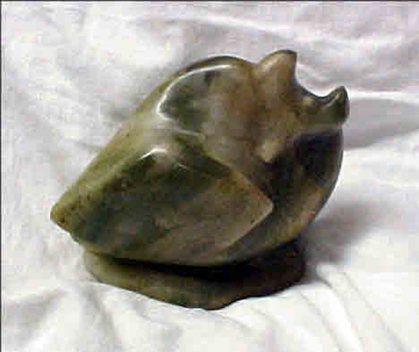 This little Screech Owl was carved in November of 1970 from stone from the Henderson Connelly Talc mine in Madoc, Ontario. It was carved before I started cataloging my pieces so has no number, but a date.