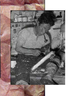in soapstone dust, they work individually or in pairs on their