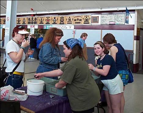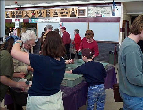 And this is what the excitement was about. The people above were working hard to polished slabs of soapstone into pendants of all shapes and colour.