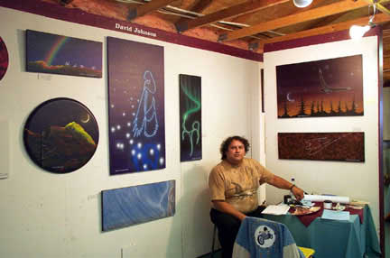David Beaucage Johnson showing his paintings which reflect a